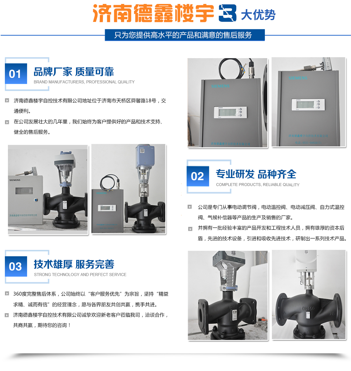 濟(jì)南德鑫樓宇自控技術(shù)有限公司是專門從事電動(dòng)調(diào)節(jié)閥,電動(dòng)溫控閥、電動(dòng)減壓閥、自力式溫控閥、氣候補(bǔ)償器等產(chǎn)品的生產(chǎn)及銷售。濟(jì)南德鑫樓宇自控技術(shù)有限公司擁有一批經(jīng)驗(yàn)豐富的產(chǎn)品開發(fā)和工程技術(shù)人員,擁有先進(jìn)的技術(shù)設(shè)備,引進(jìn)和吸收先進(jìn)技術(shù),研制出一系列技術(shù)產(chǎn)品。